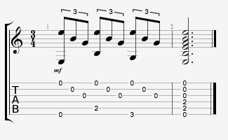 Die Romanza ist im Dreiviertel Takt, daher muss immer nur bis zur drei gezählt werden. Jede eins wird mit Daumen und Ringfinger mit zwei Seiten gleichzeitig angeschlagen. Jede zwei und drei nur die hohe E-Seite.